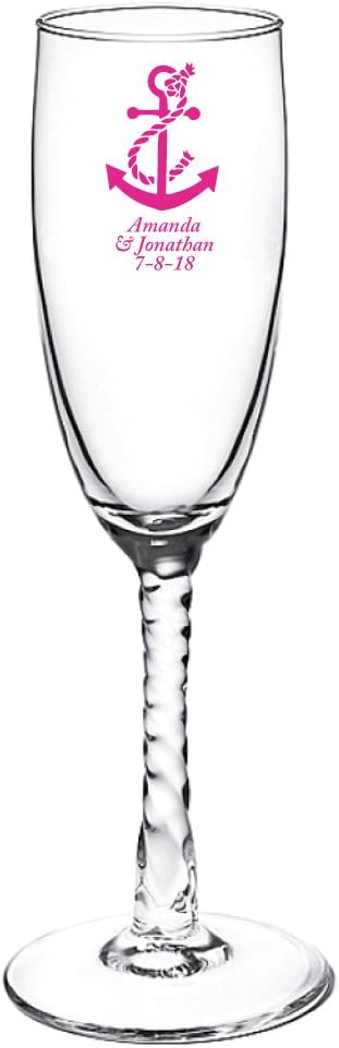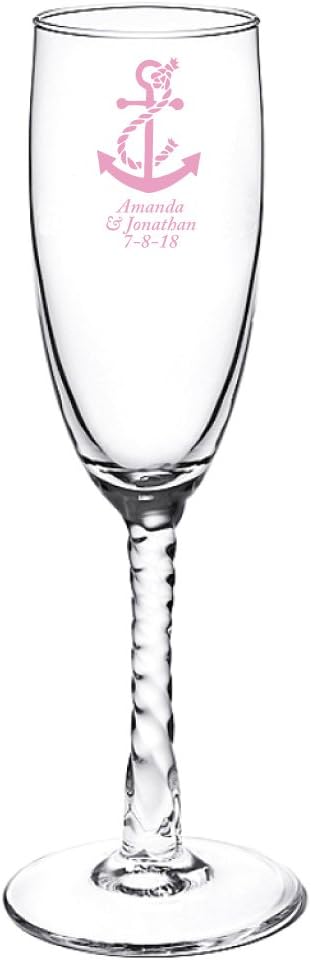 Personalized Color Printed Twisted Stem Champagne Flute - Anchor - Blue - 12 pack